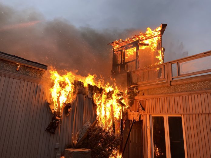 “The call came in at 3:30 p.m. with reports of a fire under the house. 55 firefighters were on scene battling high winds and snow. They worked to find the seat of the fire until they were forced to a defensive as the structure became fully involved.”