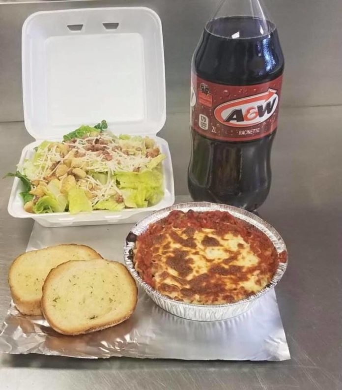 Wednesday special buy 2 lasagna’s – comes with two pieces of garlic bread each, caesar salad and a 2L for $35+ tax and delivery!! 1044 Dufferin Ave Wallaceburg