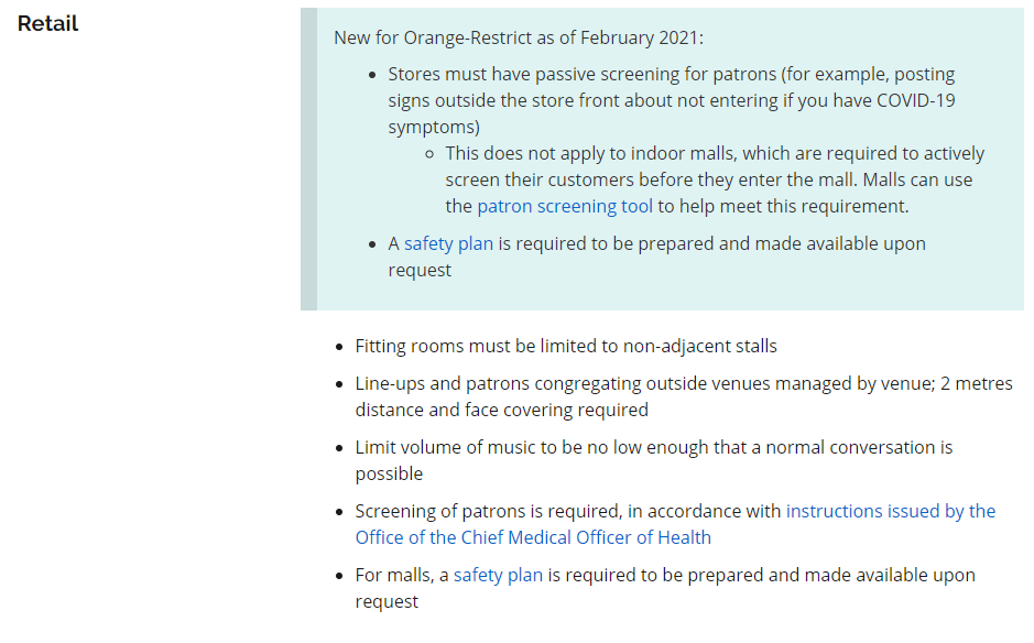 Beginning on Monday, March 1, 2021, Chatham-Kent moved into the ‘Orange-Restrict’ tier of the Keeping Ontario Safe and Open framework.