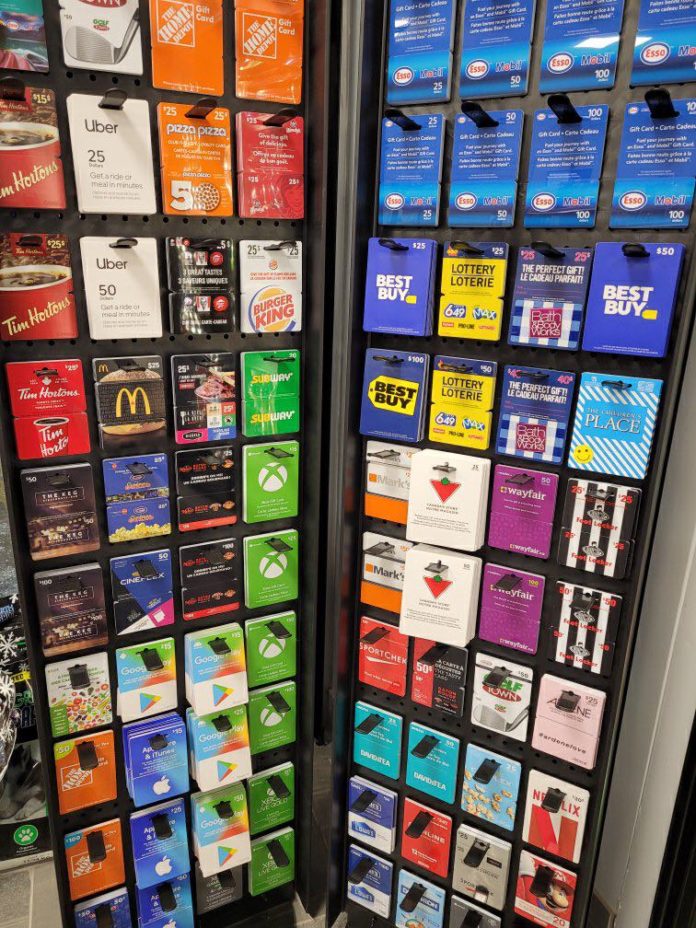 Prepaid gift cards for almost any store or service you can think of are available at our location. We also carry safety salt for your driveway and side walks at great prices, stop in and browse – grab a hot coffee while you are here! At the corner of Murray and Base Line.