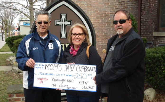 The Chatham Kent & Tri Shores Lambton ATV Club made a $250 donation to the Mom’s Baby Cupboard in Wallaceburg on Saturday, March 27, 2021.