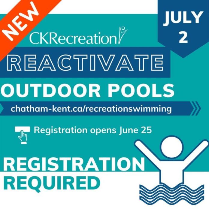 CKRecreation is excited to announce that outdoor pools will reopen July 2 and that all Recreation swims are FREE!!Please note: registration is required! You can register online at www.chatham-kent.ca/recreationswimming or call 519-360-1998 to book starting June 25! Registration opens one week in advance. We can’t wait to see you in the pool this summer! Come and cool off with CKRecreation! ![]()