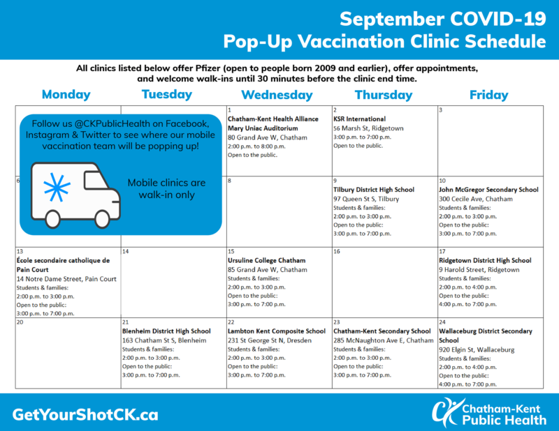 Chatham-Kent Public Health Unit officials updated their ‘current status’ page of their website on Thursday, September 2, 2021.