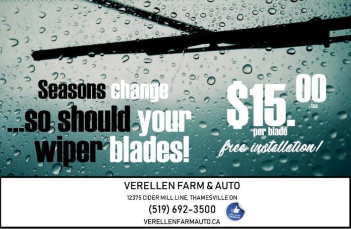 Rainy days are here again in southwestern ontario.a good Time to Change your Wiper Bladess, Service your Vehicle, Get Repairs done that you have been putting off. VFA Quality Repairs Done Right the First Time. VFA open M-F 8am – 5 pm www.verellenfarmauto.ca for more info.