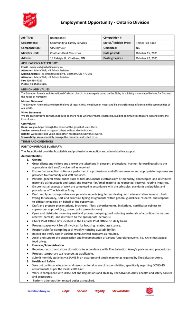 – Adult Supervisor at St Clair Catholic District School Board – Administration Office in Wallaceburg. Apply, here.