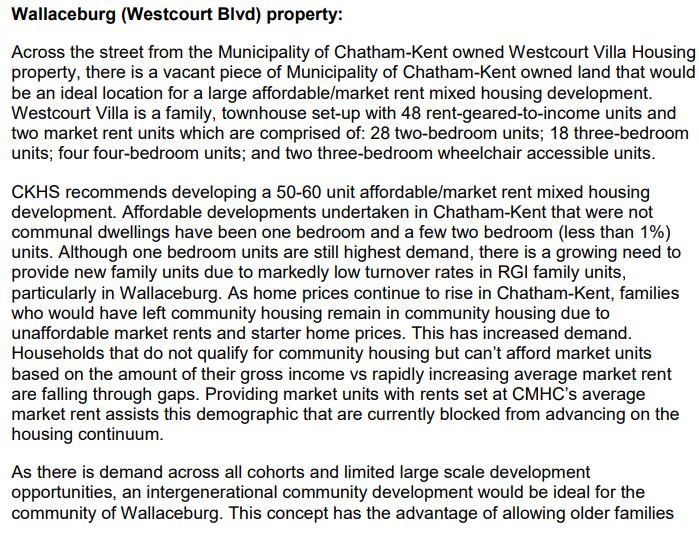 Chatham-Kent staff provided the following information in regards to the Westcourt Boulevard property: