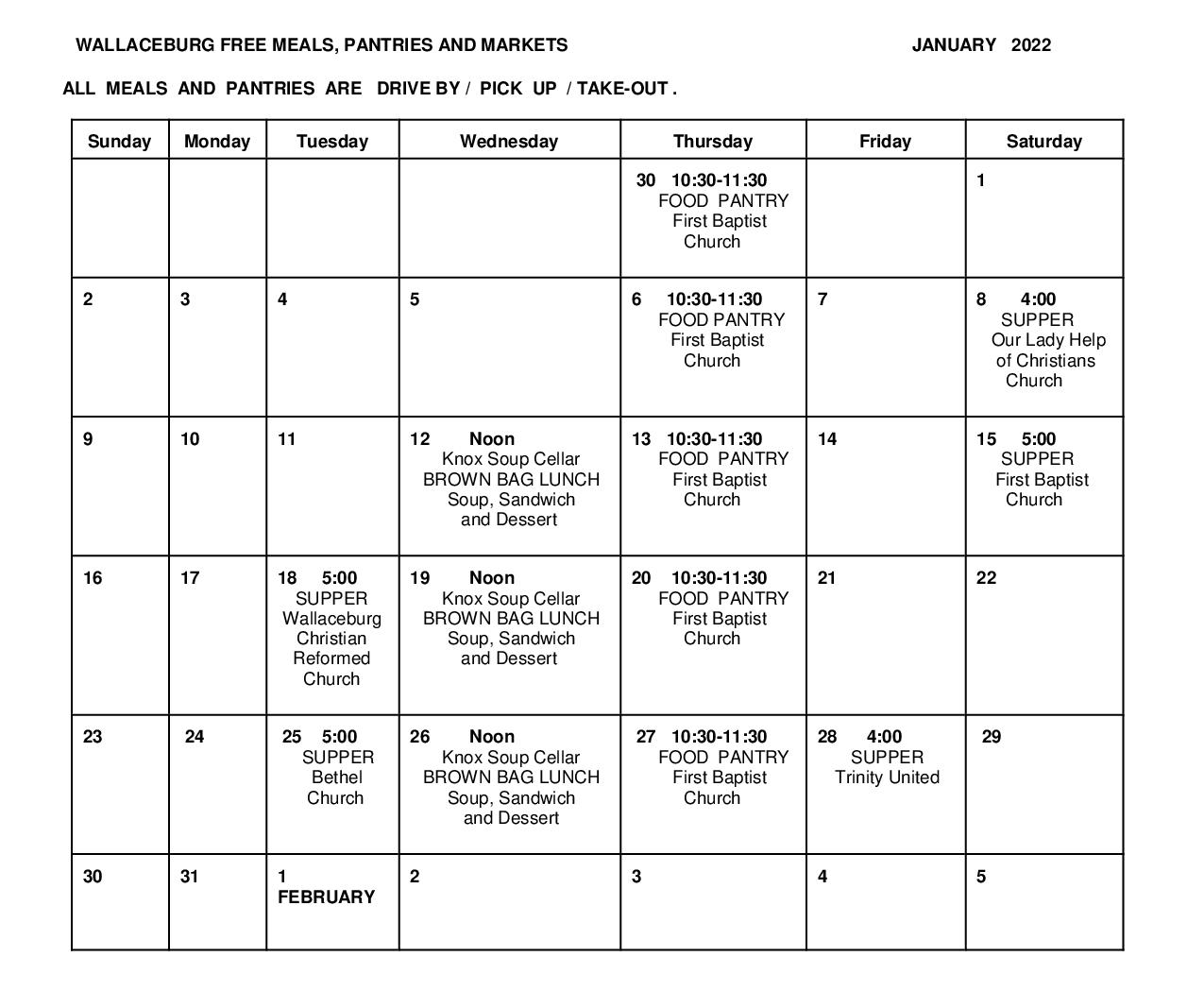 Business January 3, 2022 Free Community Meals in Wallaceburg January 2022 Calendar Wallaceburg Physiotherapy & Sports Injury Clinic reminds you of these free community meals happening in Wallaceburg this January. Previous articleLumberjack Home Building CentreNext articleJeff’s Barbershop in Dresden – update - Advertisment -