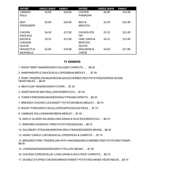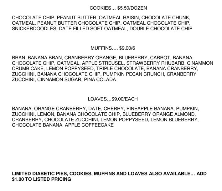 There are updated frozen food/baked goods menus below with new pricing effective immediately.