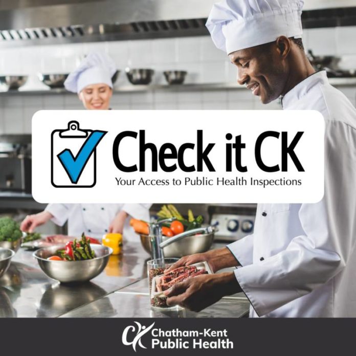 Visit https://checkit.chatham-kent.ca/ and browse the list of businesses and restaurants. Click or tap each to view a list of inspections, as well as inspection details.