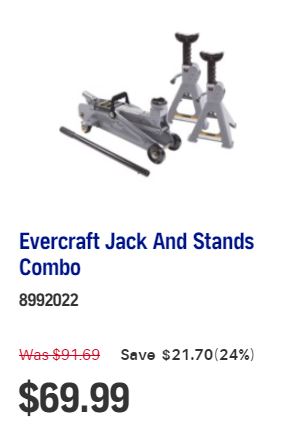 Evercraft – 2-Ton Hydraulic Trolley Jack And Stands Combo is 10% off when you order online CLICK HERE. Then pick up at our location on Selkirk St, Wallaceburg.