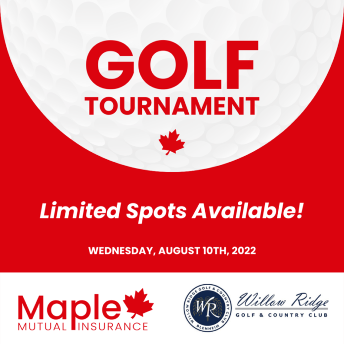We’re counting down the days to the annual Maple Mutual Insurance golf tournament hosted by Willow Ridge Golf & Country Club! To secure your foursome today, contact Lisa at (519) 683-4484 or lisa@maplemutual.com. Act quickly, because reservations are going fast!