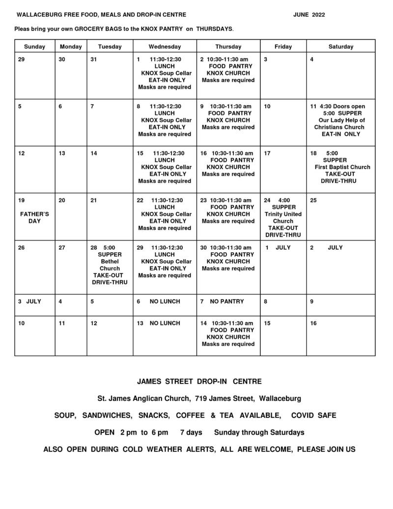 A number of free meals are being held throughout Wallaceburg in the month of June, 2022.