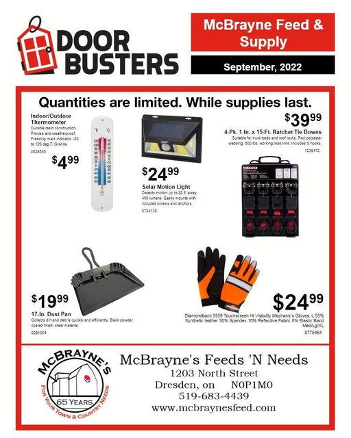 Business September 29, 2022 McBrayne’s Feeds and Needs Only a day left for these September door busters! Previous articleEd’s BaitNext articleJames Street Eatery - Advertisment -