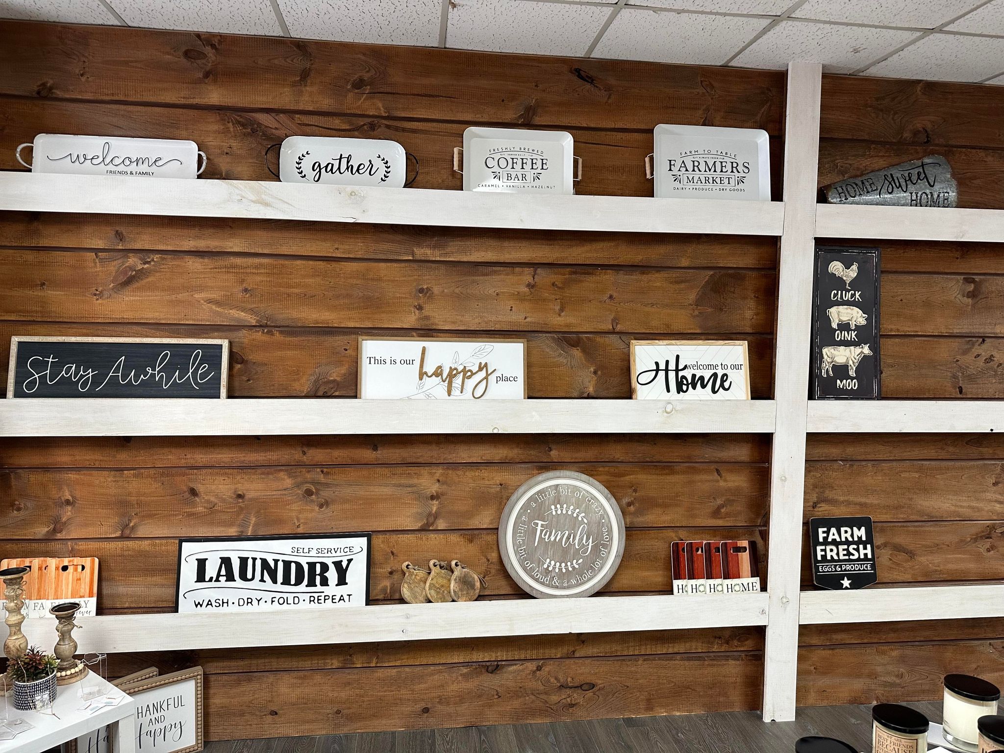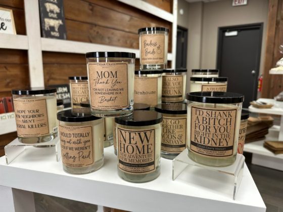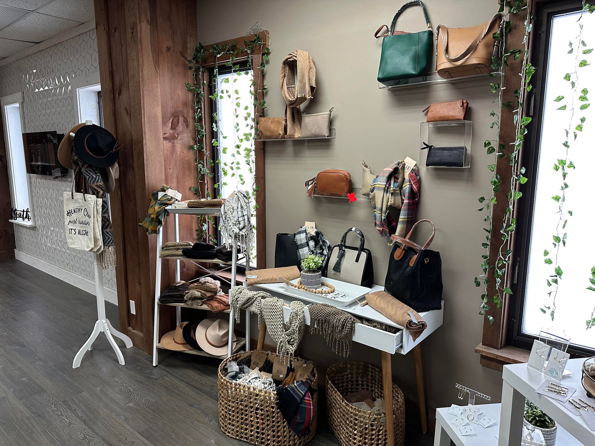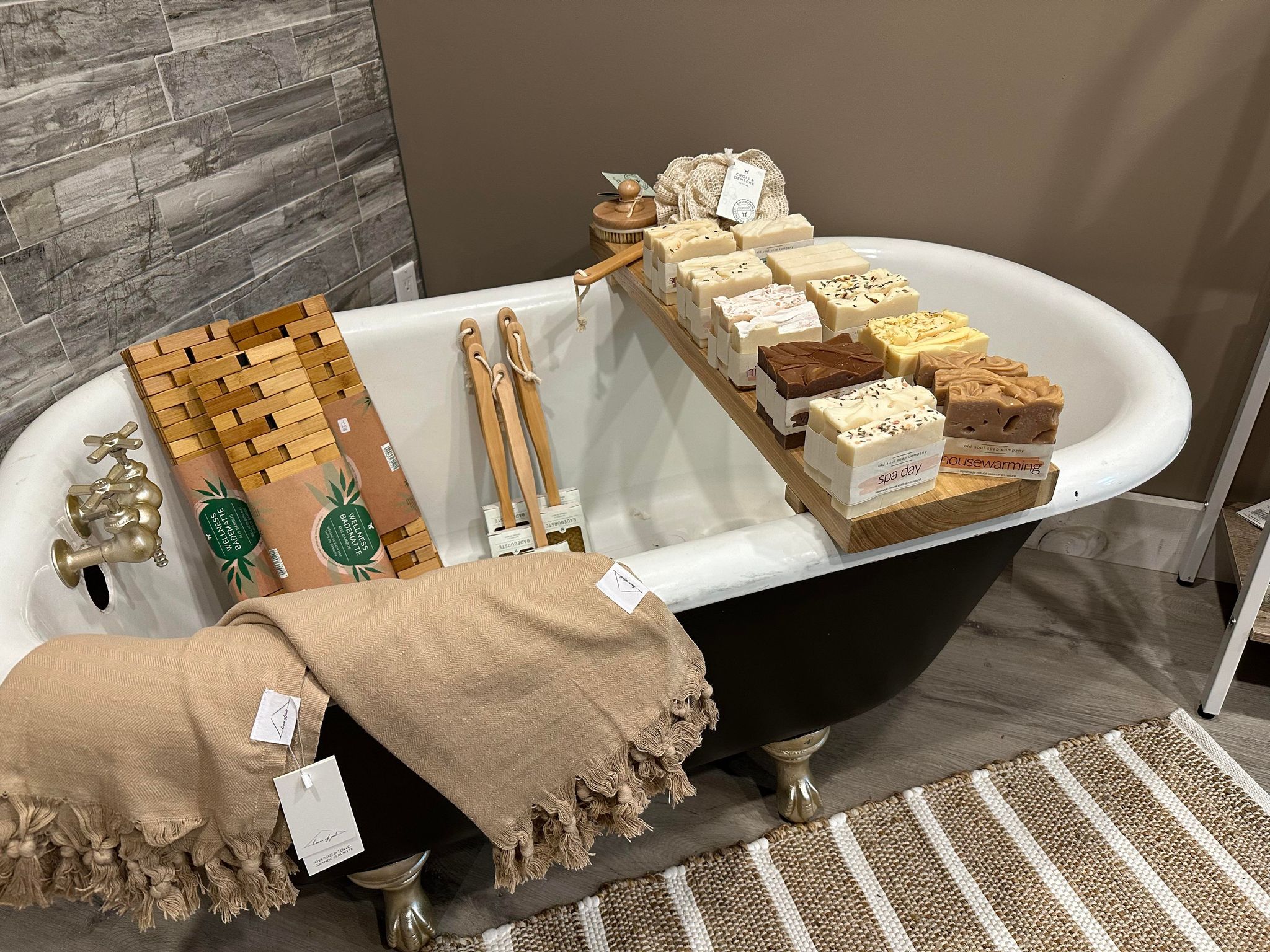 Customers can browse through a variety of products, including soap, spices, candles, scarves, jewelry, handbags, socks, hats, and more.