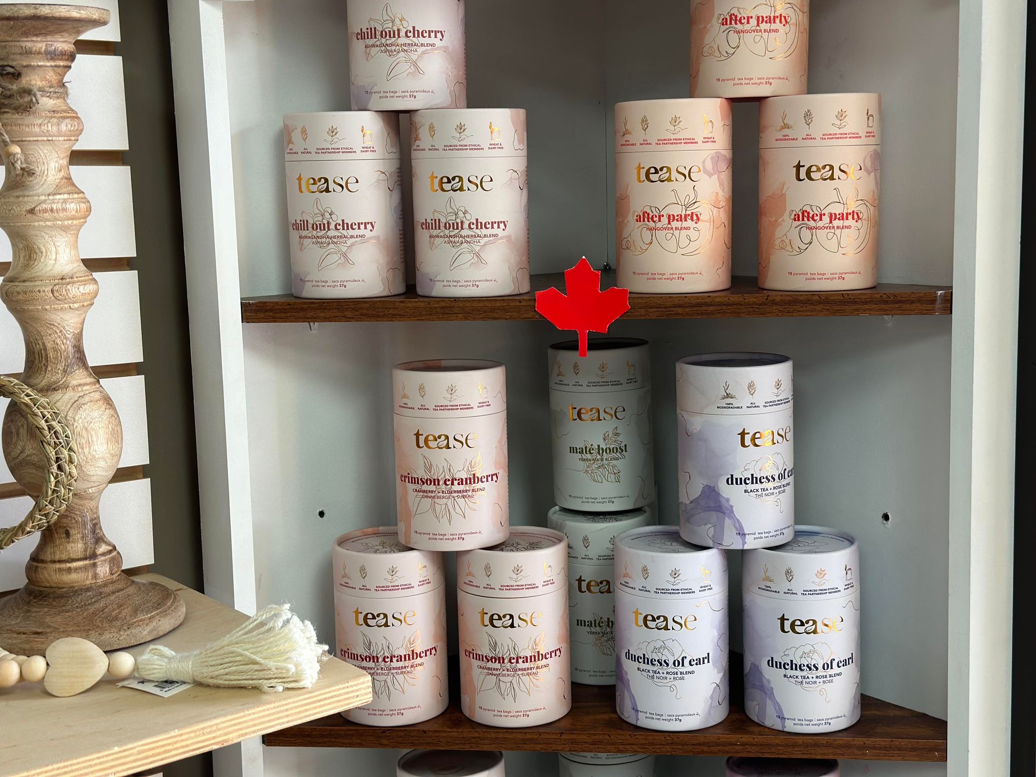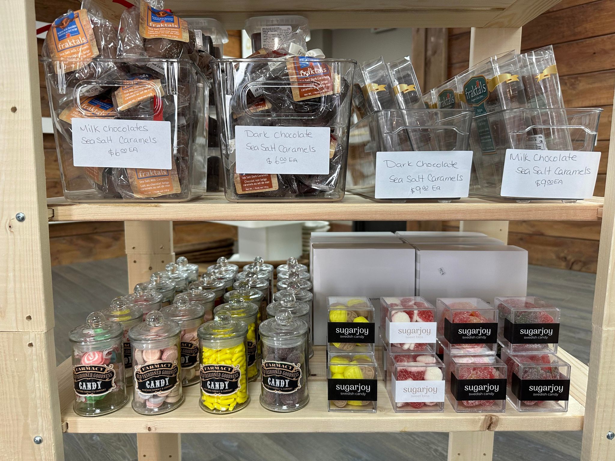 In addition to these items, the shop also offers specialty teas, jams, candy, salty snacks, and chocolate, almost all made by Canadian producers.