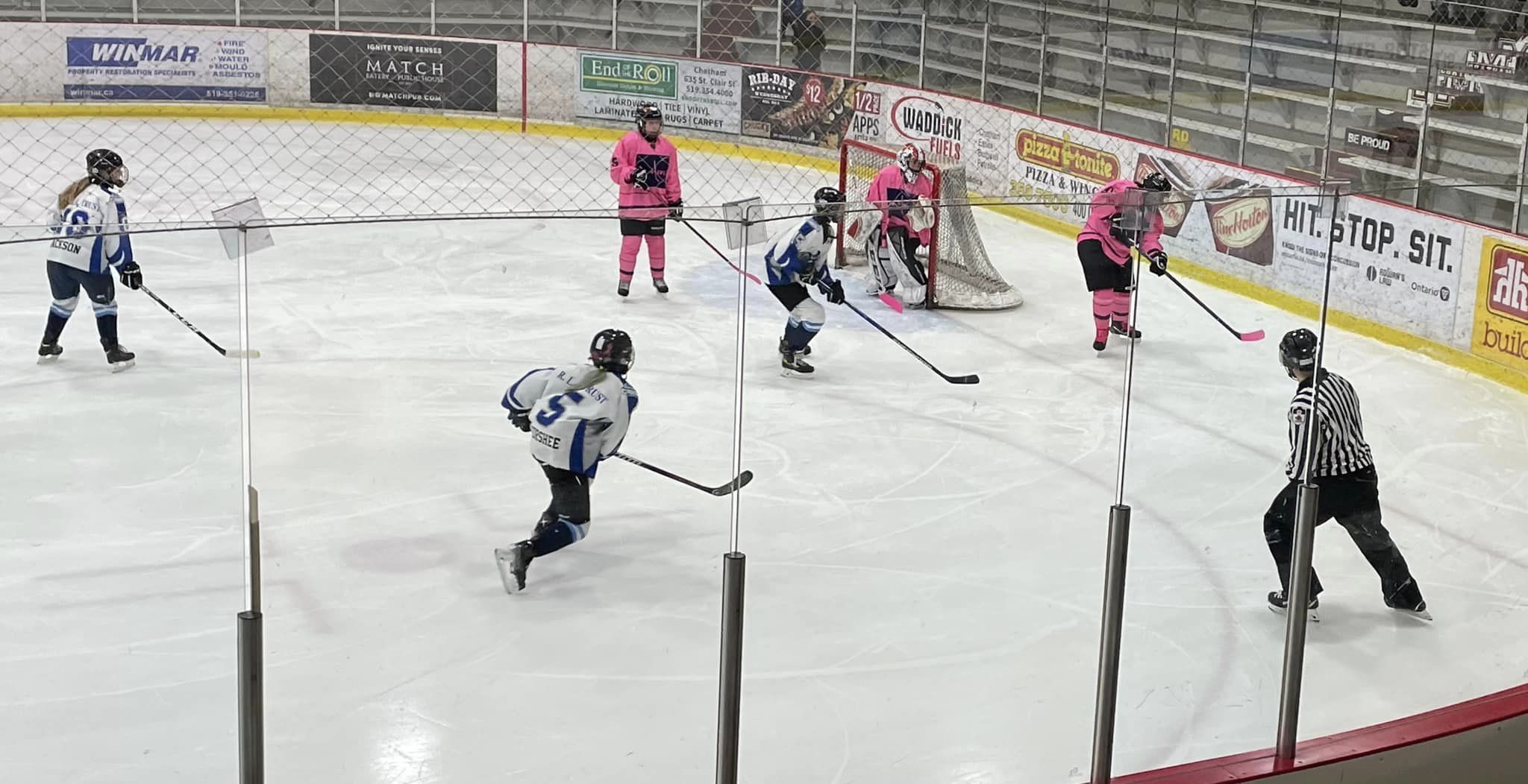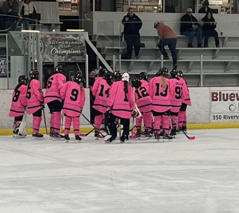 The Wallaceburg U15 girls squad wore pink this past weekend, to show support for a local family connected to both a teammate and an opponent from the Chatham-Kent Girls Hockey Association.