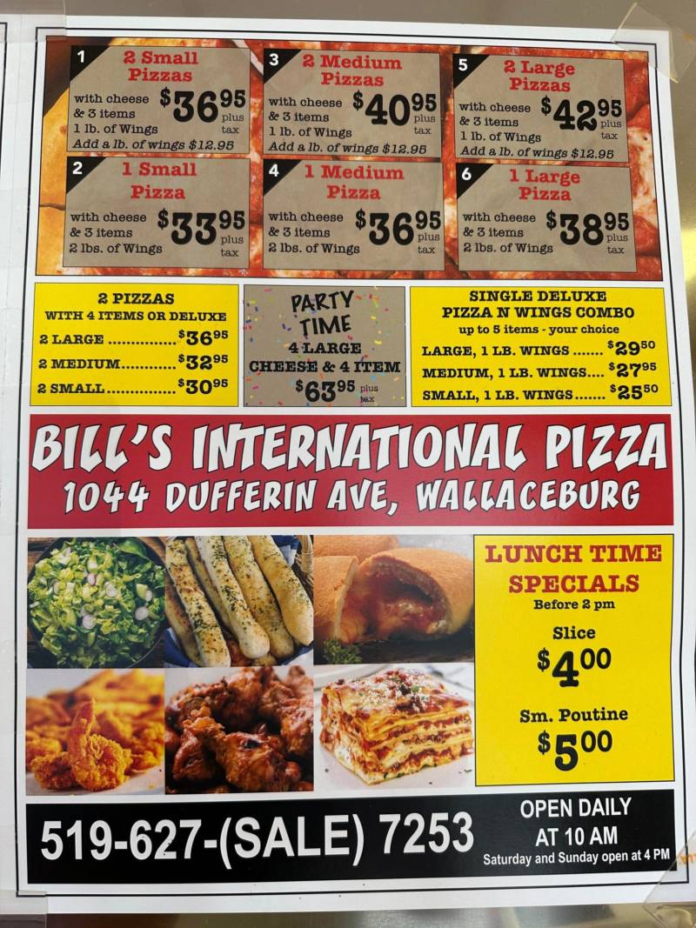 Business May 1, 2023 Pickle fries at Bill’s International Pizza One size only for $7.95 plus tax and Delivery. We get it to you piping hot and just the way you ordered it!  Open Monday – Friday 11am – midnight, Saturday 4pm – midnight and closed Sundays. Previous articleHomeward Realty- Just ListedNext articleMissing male and female cats – Wallaceburg - Advertisment -