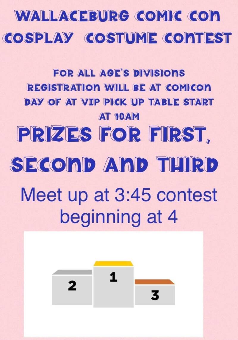 Saturday will be the Big Day! Wallaceburg’s Comic Con there will be a costume/ cosplay contest, celebrity guest, door prizes and so much more!