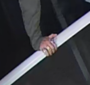 The male also was wearing a distinct array of rings on his right hand. The video appears to depict the male wearing three (3) large rings spread across three fingers.