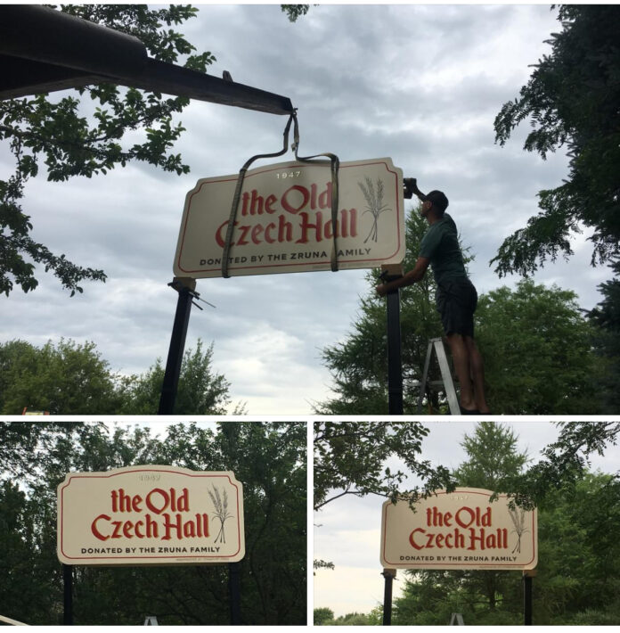 The Czech Hall wishes to thank the Zruna Family and Spankyjay Signs for our beautiful new street sign. This replaces the earlier sign from the mid 1990`s. Also a special thank you to Mike Yankovitch for his expertise and dedication in keeping the Old Czech Hall a vibrant part of our wonderful community. The new events lettering section is also being installed at a later date. Na zdravji a dekuji