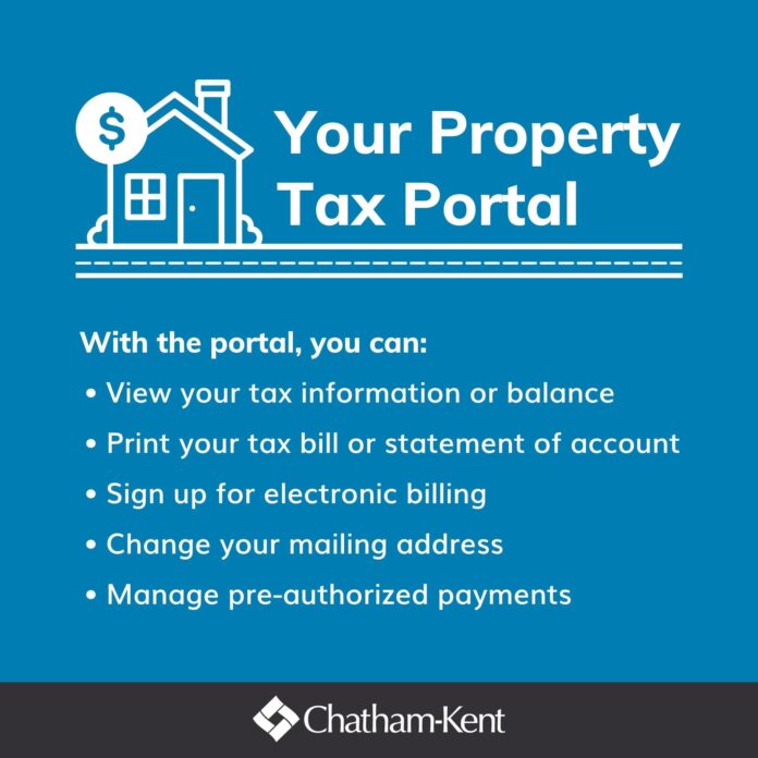 Visit https://www.chatham-kent.ca/services/propertytaxes/Pages/Pay-Property-Taxes.aspx to manage your property taxes.
