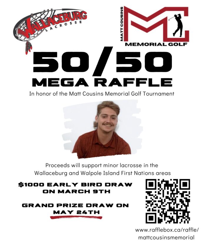 This MEGA raffle is dedicated to the memory of Matt, and the proceeds will aid minor lacrosse in the Wallaceburg and Walpole Island First Nations areas.