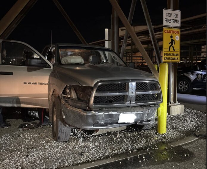 On April 14th at 11:30 p.m. police were dispatched to Imperial Oil following reports of a vehicle crashing through a security gate.