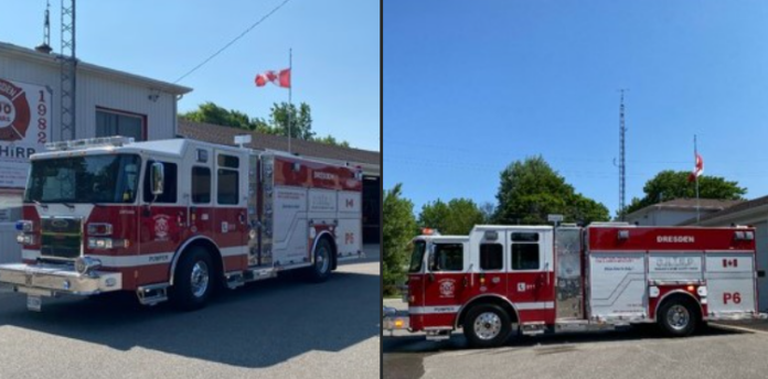 The new apparatus replaces P-6, a 2003 International Fort Garry pumper that has served the Dresden area for over two decades.