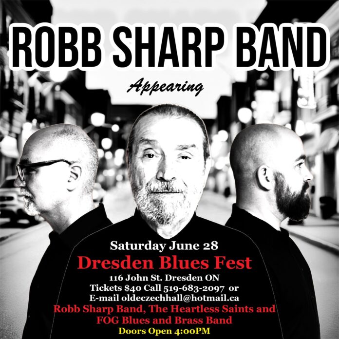 The Czech Hall would like everyone to know that the “Robb Sharp Band” from Sarnia has filled the vacancy for the Sterling Blues Band, which was slated to be our first act in our upcoming June 28th Dresden Blues Fest. One of their band members had suddenly taken ill, so we were lucky to find such a fantastic act at the eleventh hour. Tickets are still available by calling Marion or Al at 519-683-2097