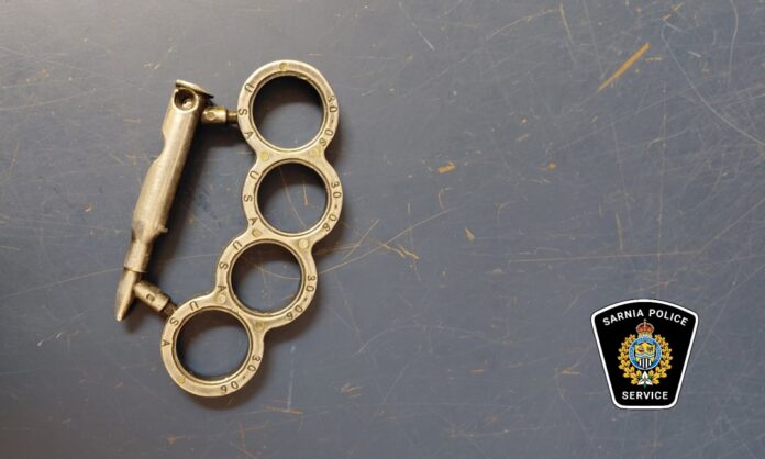 Attending officers placed the man under arrest and seized the brass knuckles. At the time of this offence, the accused was out on bail with court-ordered conditions to not possess weapons. There were no physical injuries reported from the altercation. While in police custody, the accused expressed his displeasure by urinating all over his toilet-equipped cell, resulting in an additional charge of mischief being laid.