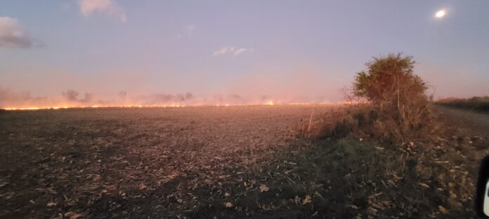 Firefighters from the Walpole Island Fire Department contained a large corn field fire Monday night on Corn Crib Road before it could spread to nearby homes.