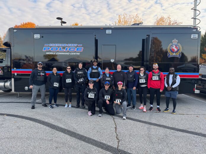 Members of the Chatham-Kent Police Service proudly took part in the annual Rucksack March for Remembrance at Kingston Park on November 1, completing a 22-kilometre march while carrying 50 pounds in support of Wounded Warriors Canada.
