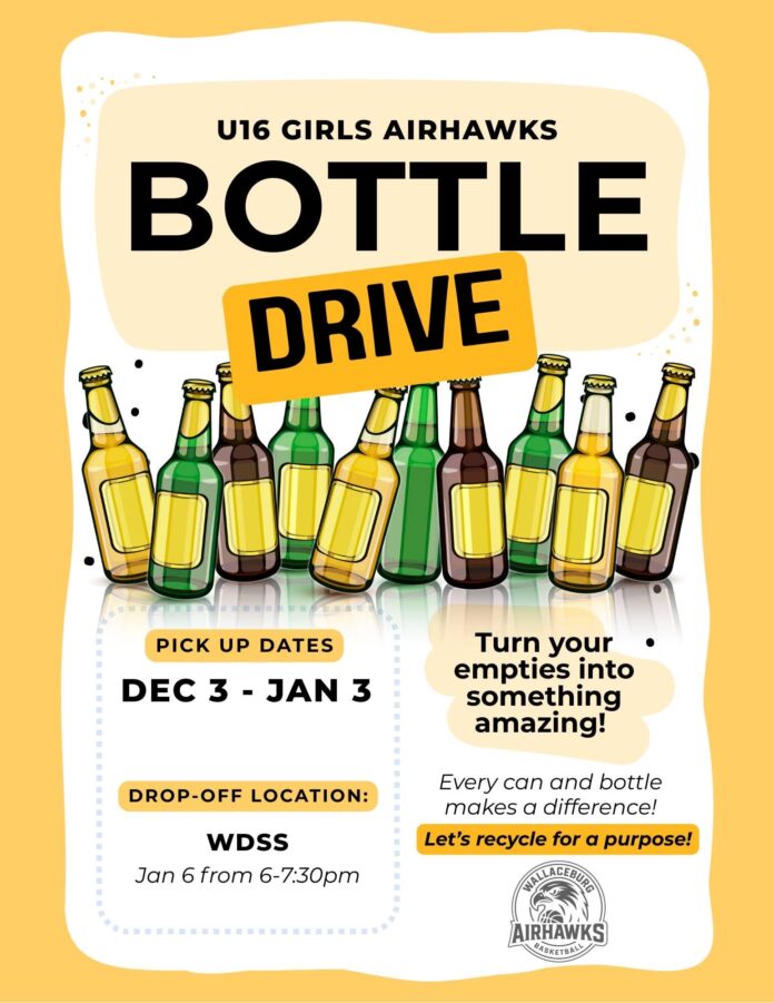 The U16 Girls Wallaceburg Airhawks have kicked off a month-long bottle drive, asking the community to donate empty cans and bottles to help support the team over the holiday season.