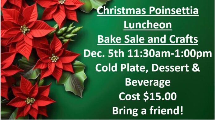 Our popular Poinsettia Luncheon is scheduled for Friday Dec. 5. Please call Trinity United Church office to make reservations or purchase tickets. 519-627-1472.