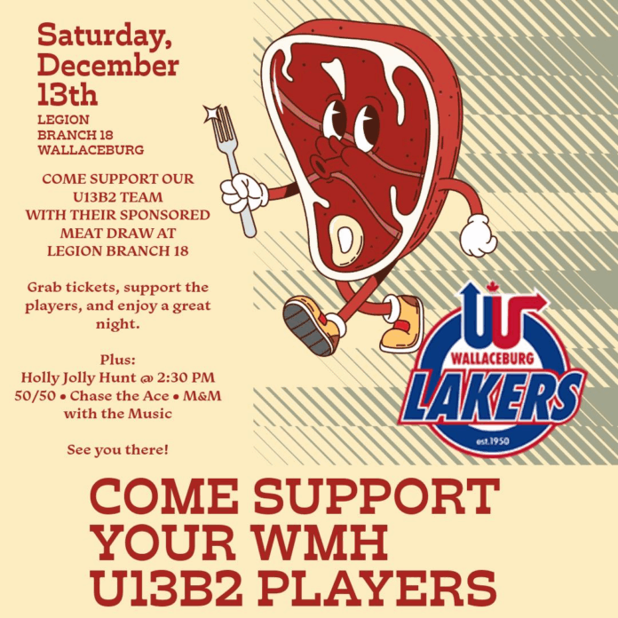 The Wallaceburg Minor Hockey U13B2 team will host a sponsored meat draw at Royal Canadian Legion Branch 18 on Saturday, Dec. 13.