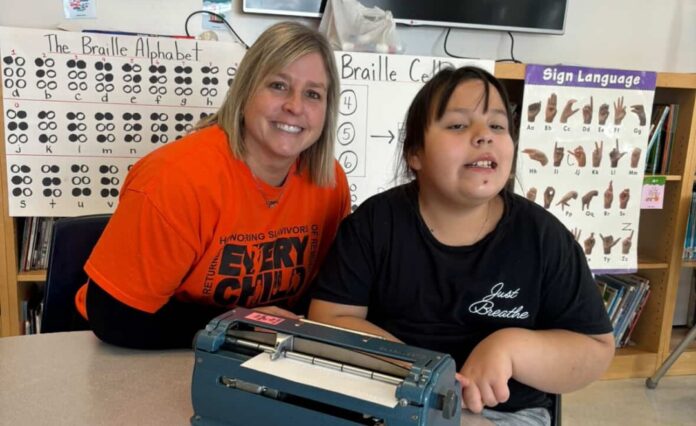 The club is led by Grade 5 student Legacie Shipman-Rogers, who is legally blind, alongside Julianne Vandernaalt, a teacher for the Deaf and Hard of Hearing and Blind and Low Vision with the Lambton Kent District School Board. During weekly lunch-hour sessions, students learn Braille through hands-on activities and have opportunities to use Brailler machines provided through the board’s Blind and Low Vision department.