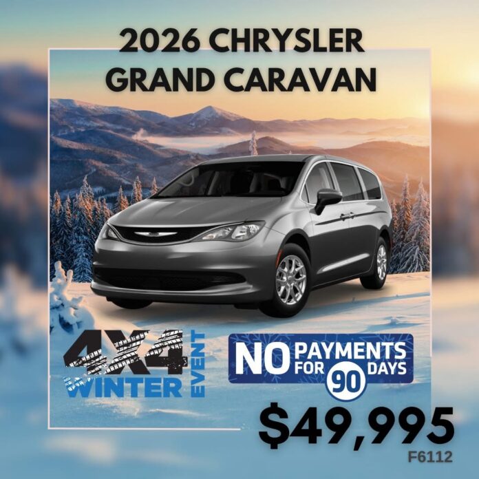 The 2026 Grand Caravan is now available for $49,995* – PLUS – no payments/no interest for 90 days! Loaded with the features families love—power sliding doors & tailgate, heated seats and steering wheel, remote start, full leather Stow ’n Go seating, a massive 10” touchscreen, and so much more!
