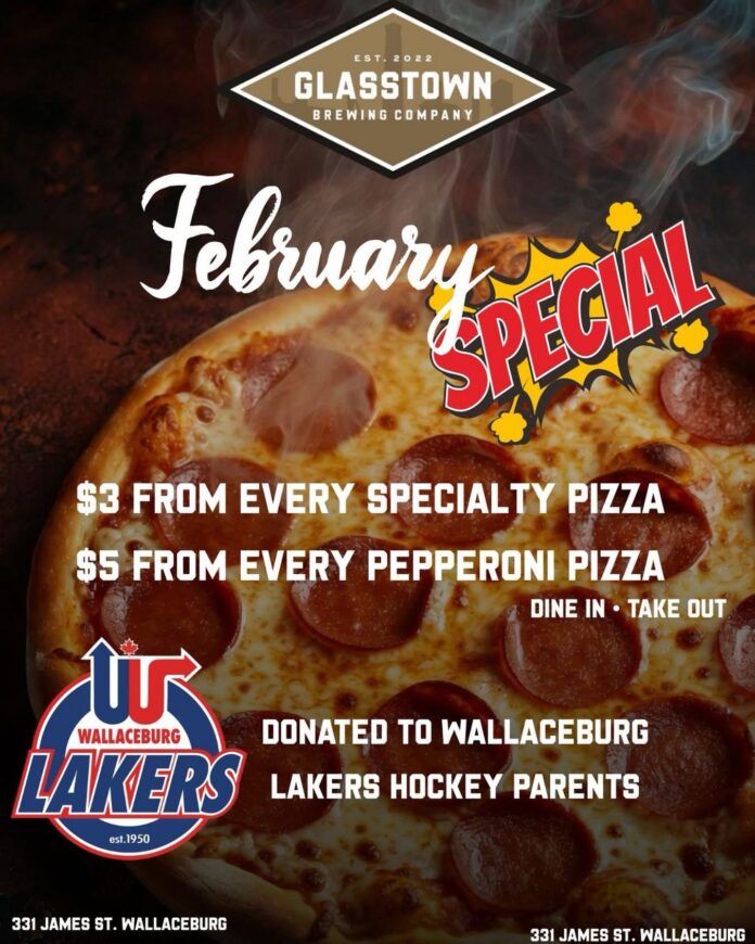 Throughout the month, $3 from every specialty pizza and $5 from every pepperoni pizza sold will be directed to support Wallaceburg Lakers hockey families.