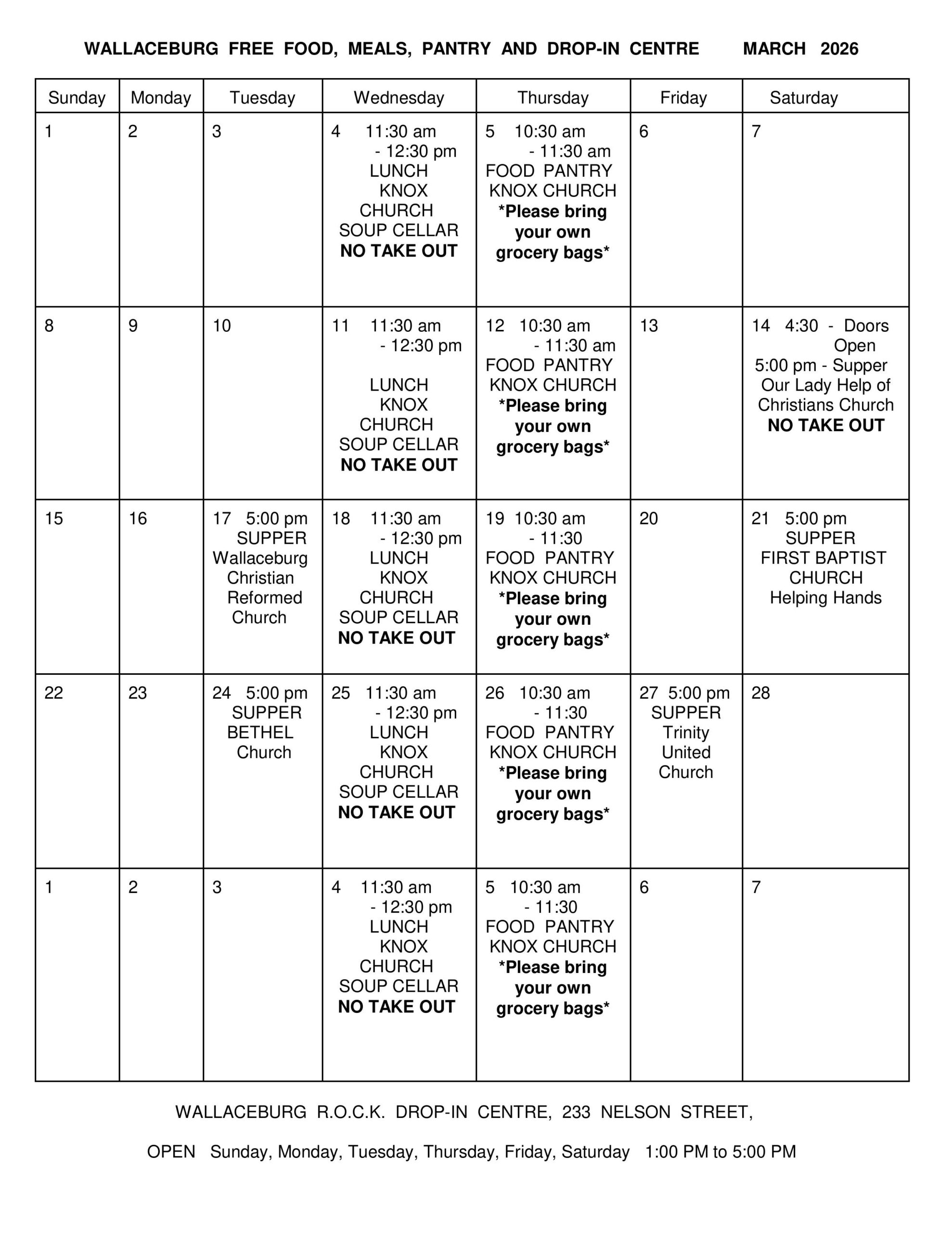 News March 2, 2026 Free meals this March across Wallaceburg There are multiple free meals scheduled across Wallaceburg throughout the month of March 2026. Details are listed, below: Previous articleWallaceburg Adult Activity Centre events/activities this MarchNext articleDog found in Wallaceburg - Advertisment -