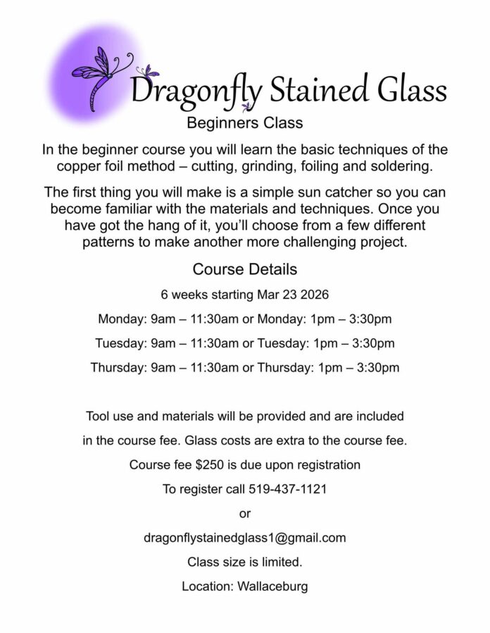 Business March 2, 2026 Stained glass beginners classes start soon! Monday afternoon is already full. Brenda looks forward to teaching you the art of stained glass. Previous articleTrivia night this Wednesday at Glasstown Brewing Co.Next articleOaks Retirement Village - Advertisment -