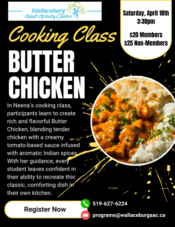 A hands-on cooking class focused on preparing butter chicken is set to take place later this month at the Wallaceburg Adult Activity Centre.