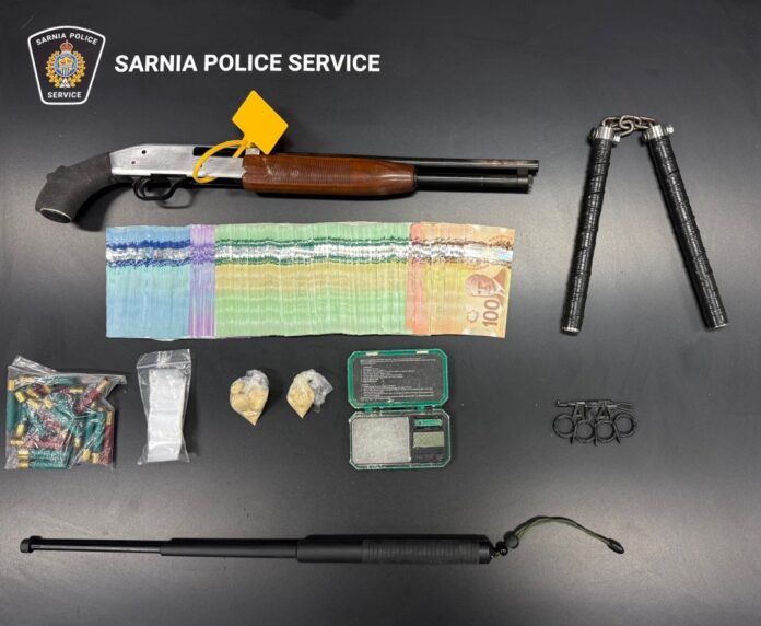 Sarnia Police Service officials allege: The Sarnia Police Service Drug Unit says a recent investigation into local drug trafficking has led to an arrest and the seizure of drugs, weapons, and cash following both an arrest and a subsequent search warrant execution.