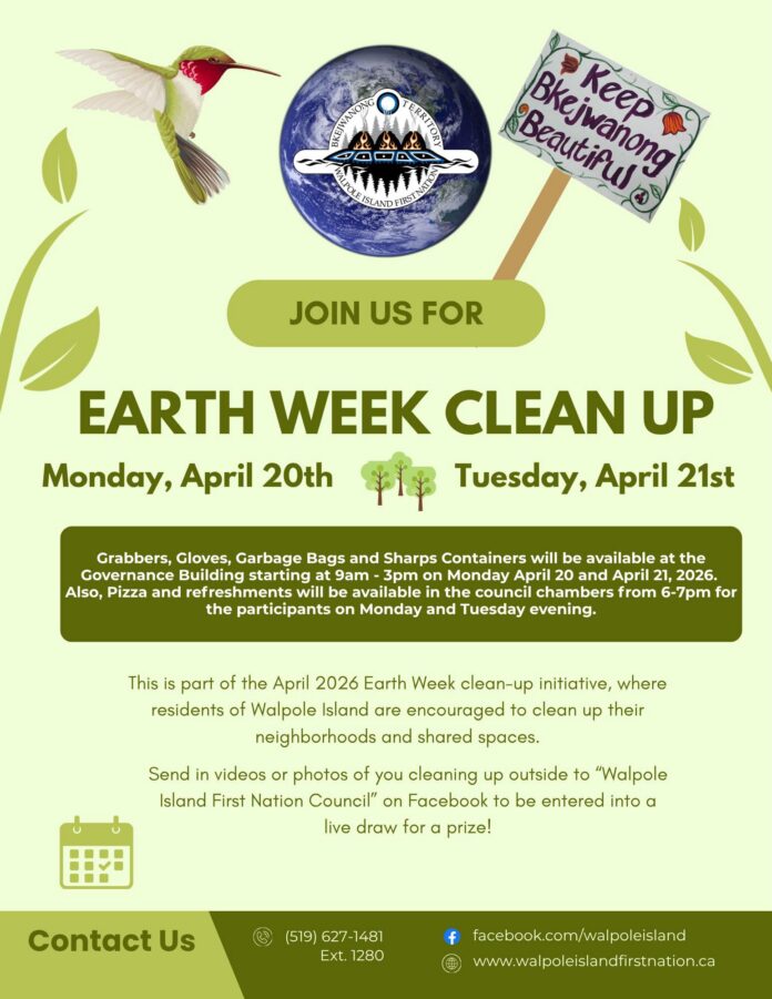 Residents are being encouraged to take part in an Earth Week clean-up initiative later this month aimed at improving neighbourhoods and shared spaces across Walpole Island First Nation.