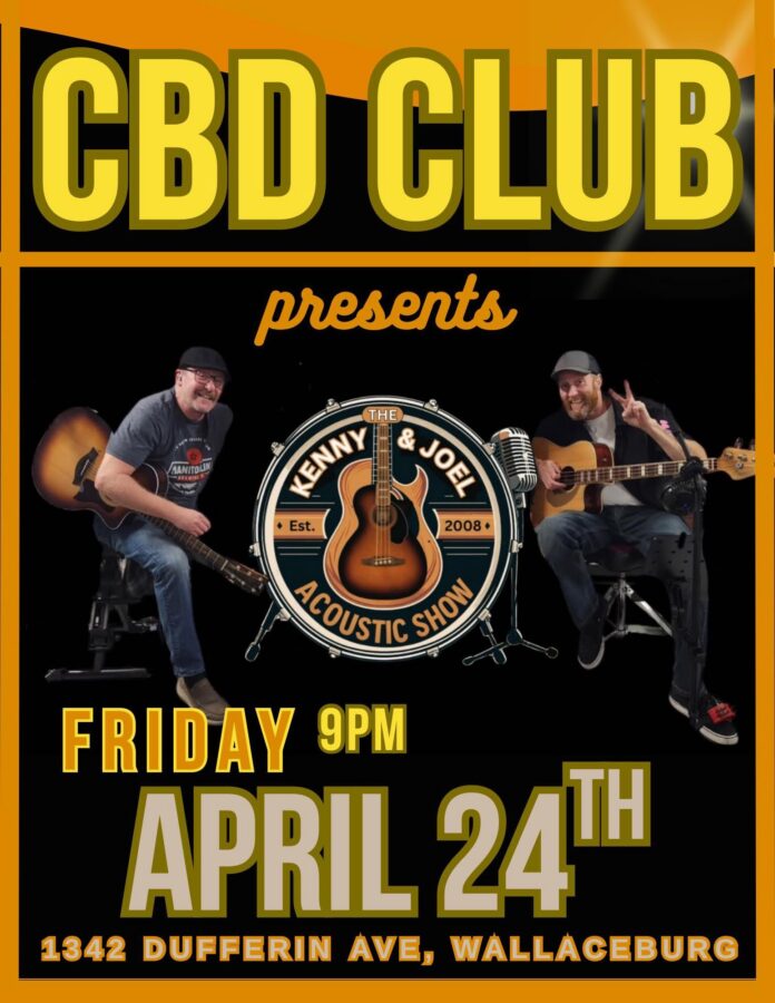 This Friday… April 24th! Kenny & Joel will be back at The CBD Club Wallaceburg. 9pm, No cover, just goodtimes! Cheers 🤘 1342 Dufferin Ave. Wallaceburg.
